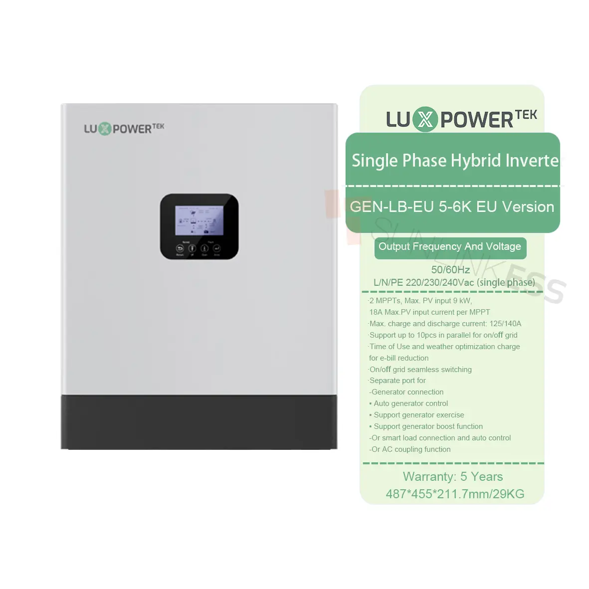 Sunlink führt die Luxpower Gen-LB-EU 5-6K-Serie vor-ein fortschrittlicher hybrider einphasige Wechselrichter für Solarbegeisterte, der eine kostengünstige, zuverlässige Solarlösung anstrebt. Anfragen willkommen!
